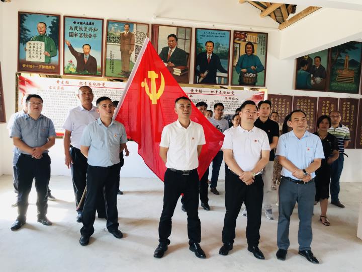 在黃士韜故居,在莊嚴的黨旗下,黨員們舉起右手緊握拳頭,用鏗鏘有力、慷慨激昂的宣誓聲再次重溫入黨誓詞。