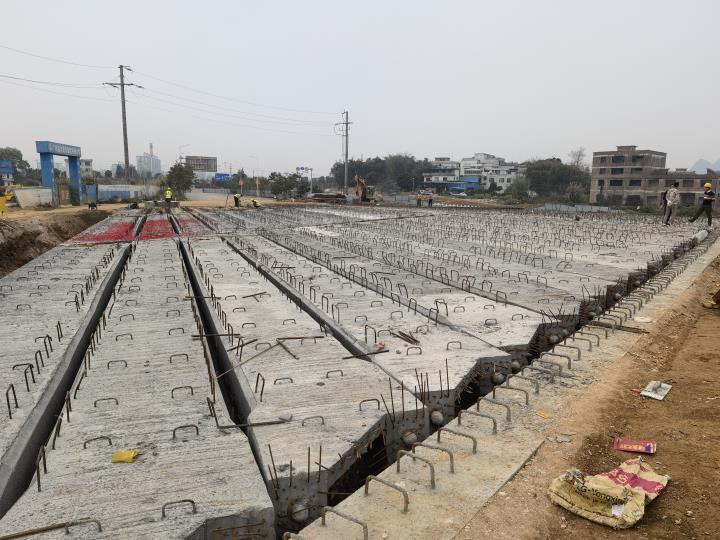 生態新城永康路永豐路工程橋梁工程項目是我市重點民生工程之一,現正在全力推進永康路育才河橋和黃田支渠橋的建設推進工作。截至目前,項目已完成投資1895萬元,完成永康路兩座橋梁的梁板架設施工,接下來將全力以赴開展橋面施工,以確保永康路兩座橋梁在3月底前通車,進一步緩解城區交通壓力。
